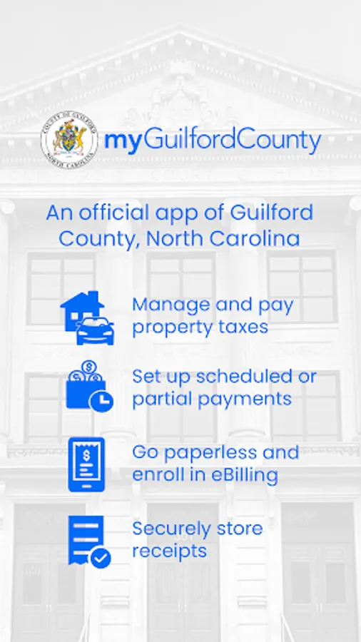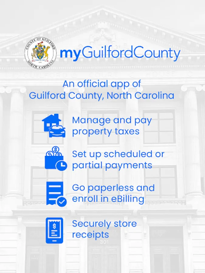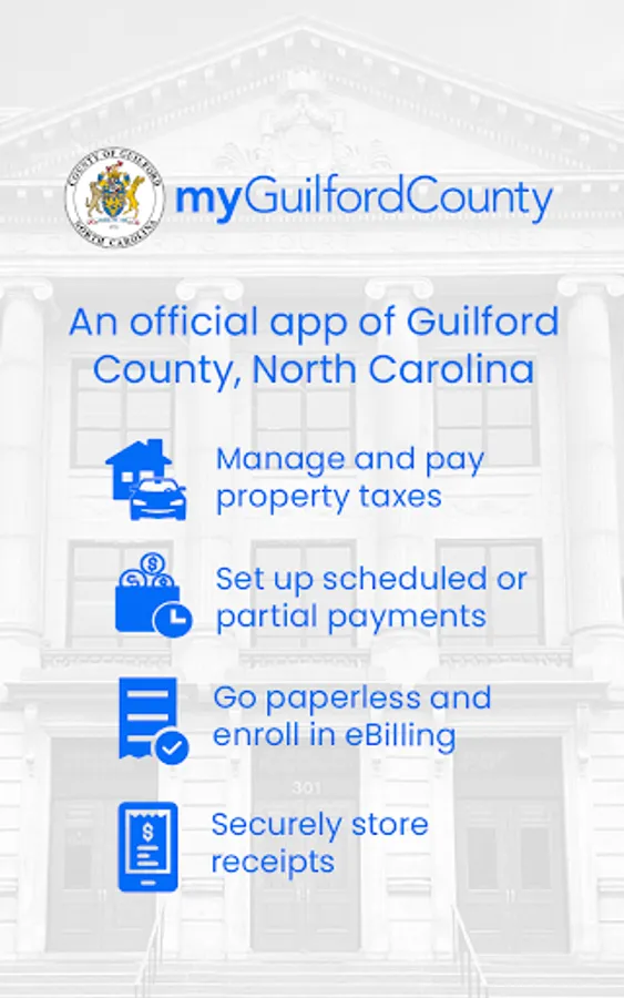 Download the official app of Guilford County, North Carolina – myGuilfordCounty. The myGuilfordCounty app brings governments and people closer together. Residents can make payments, keep track of records, and get reminders, all in one secure and easy to use solution.