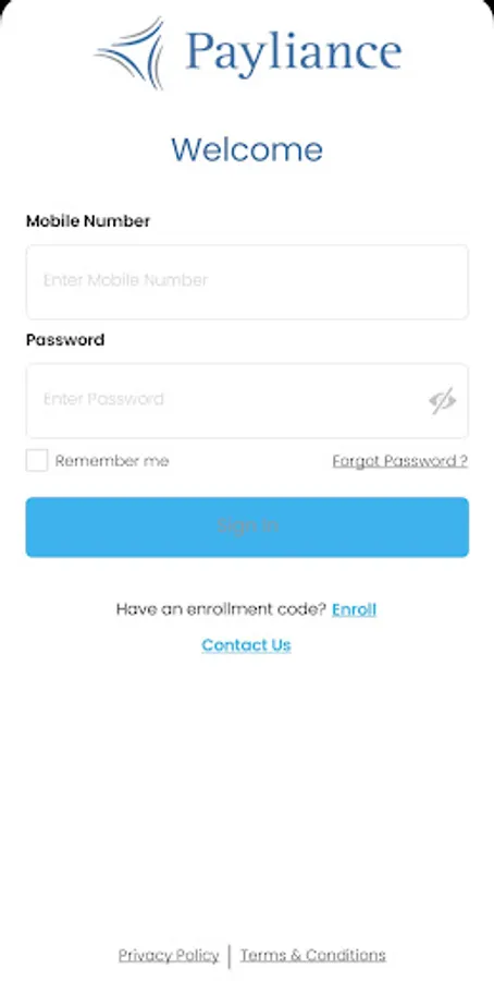 To log in please refer to the Enrollment Code. If you no longer have your Enrollment Code or the code is no longer valid, please contact us directly at mobileappsupport@payliance.com for a new code.