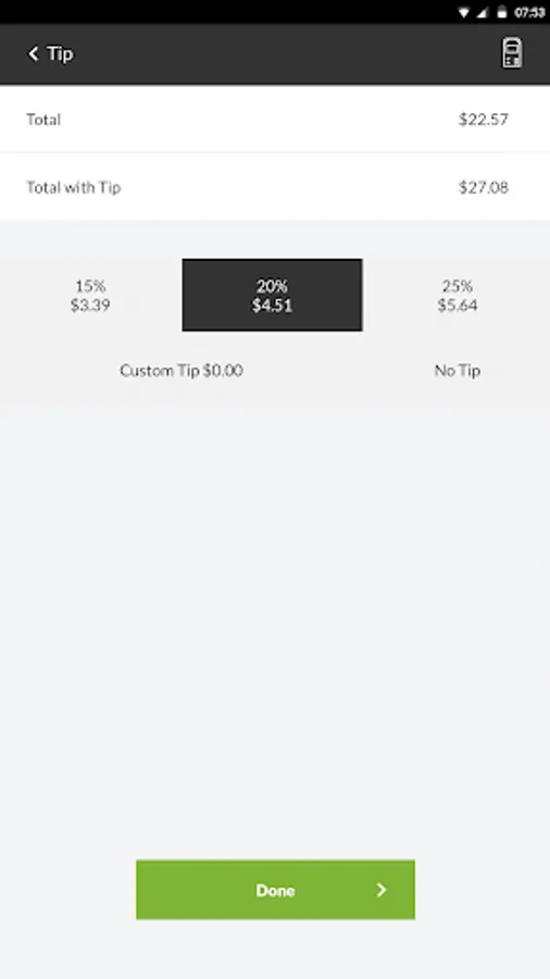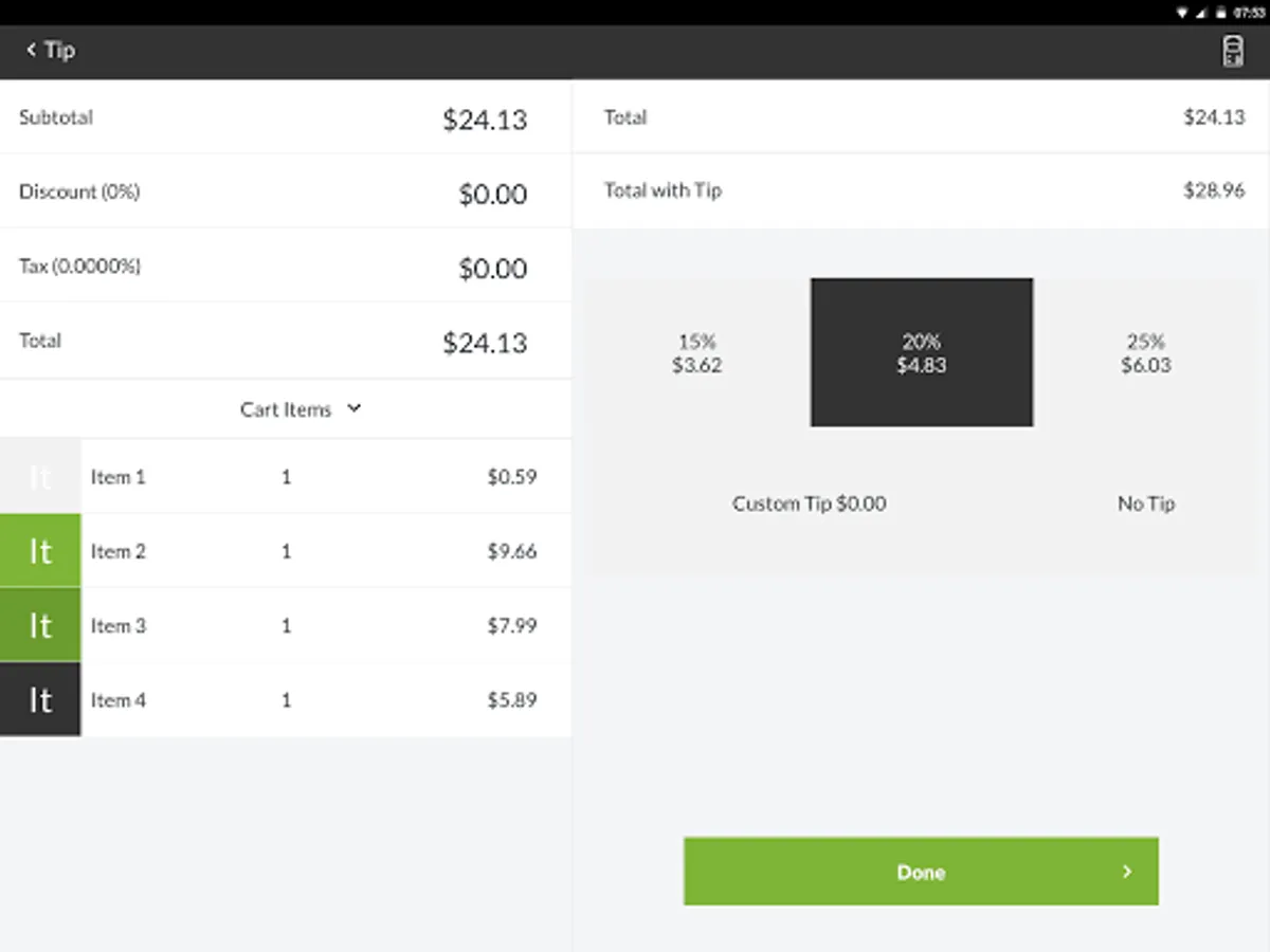 • Accept tip for both cash and card transactions.