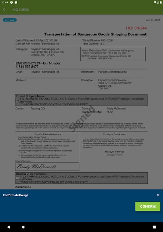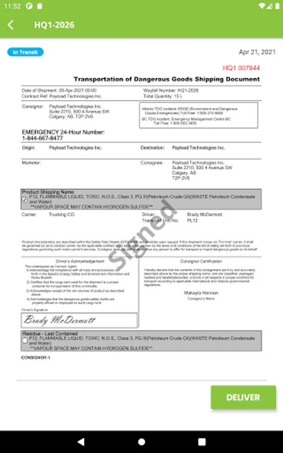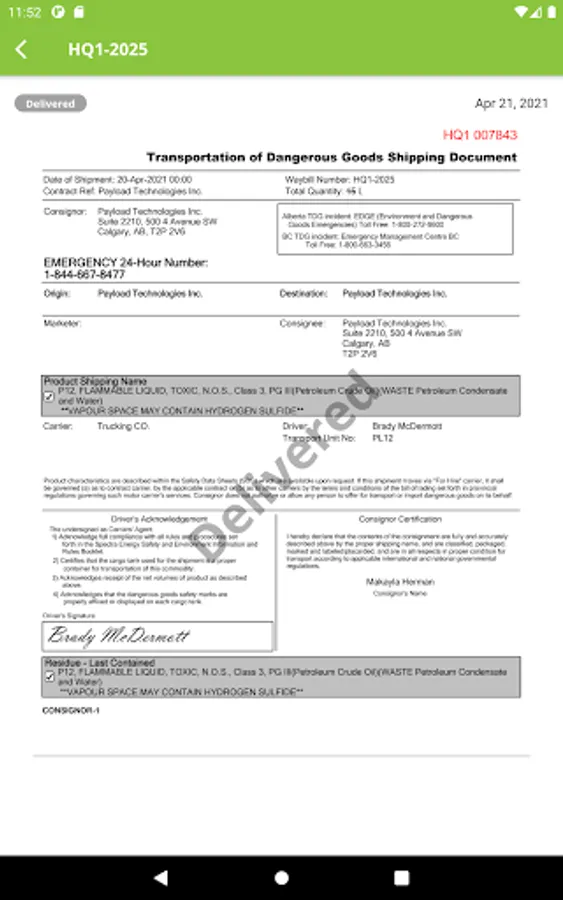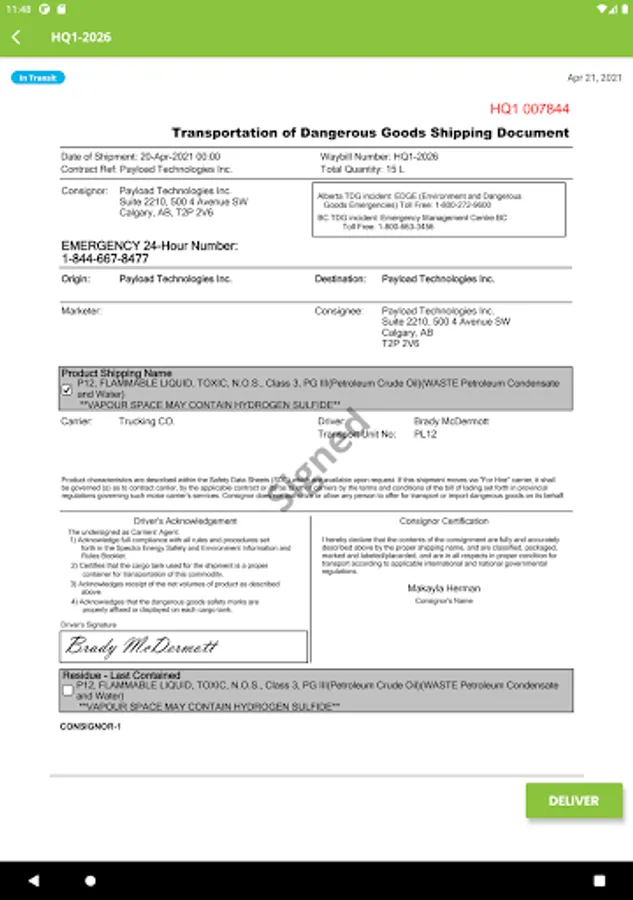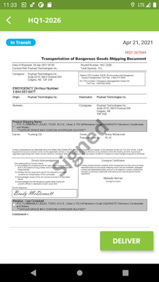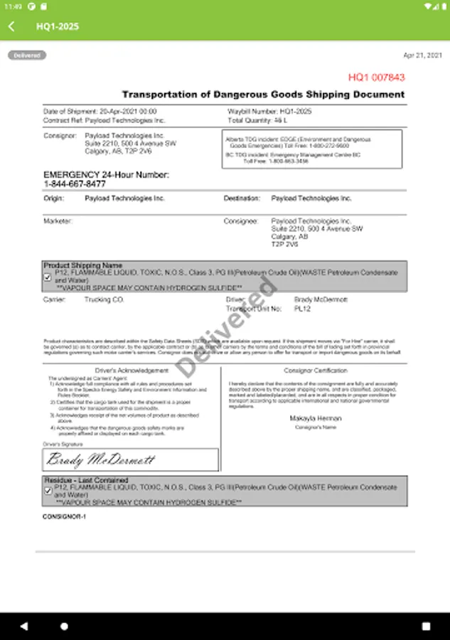 Digital Waste, Bill of Lading and TDG forms that can be cloned.