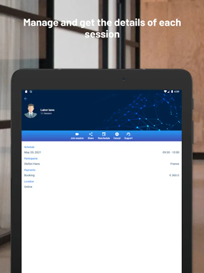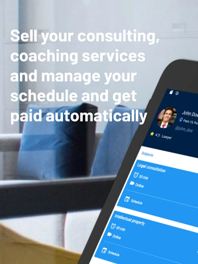PayMeet Pro helps you to offer your expertise and advisory services and to secure the payment of your fees in advance, it integrates the following features in a single application: