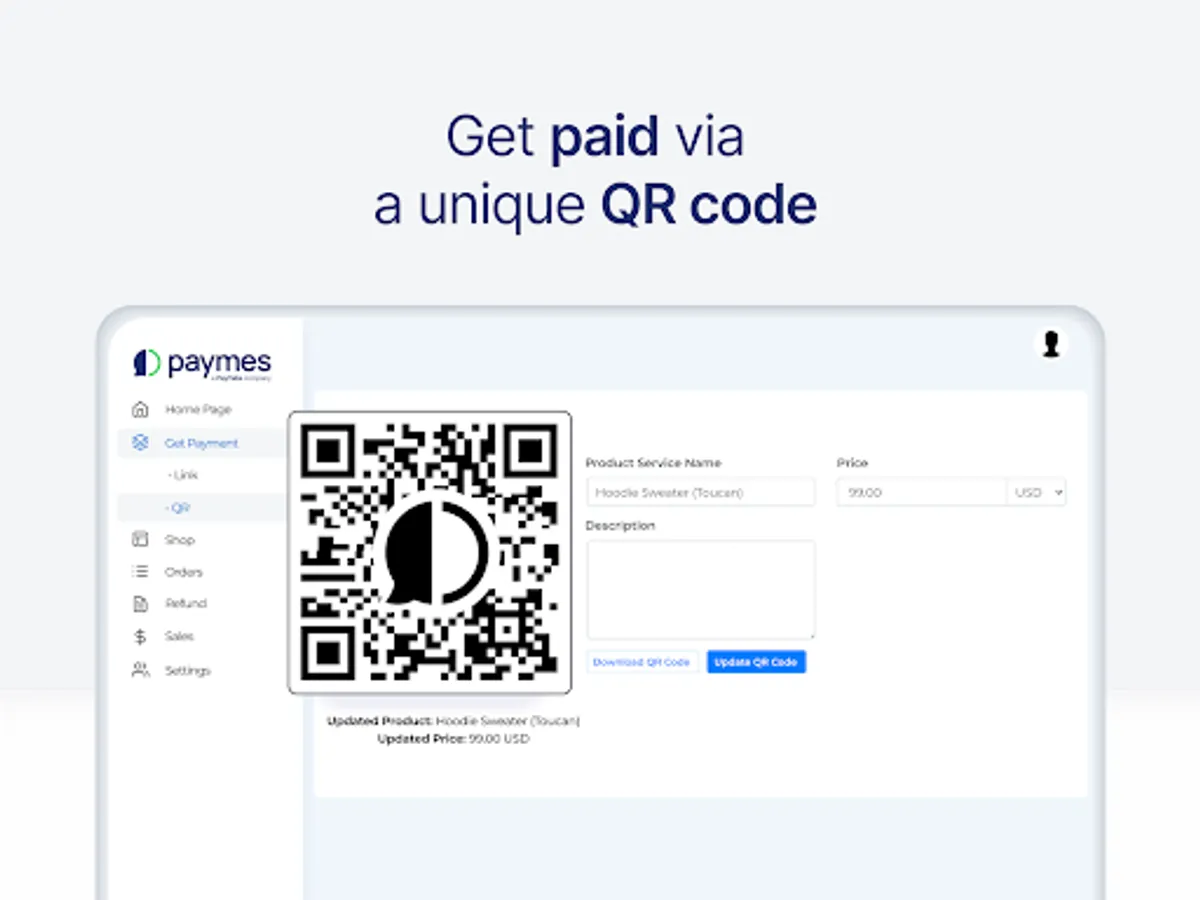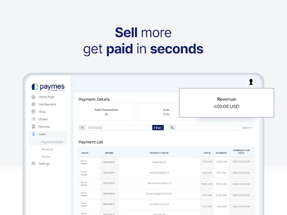 With Paymes, receive payments via link, Paymes shop and QR code, and sell via social media safely and conveniently. Our solution is suitable for freelancers, merchants, artisans, consultants, everyone really!