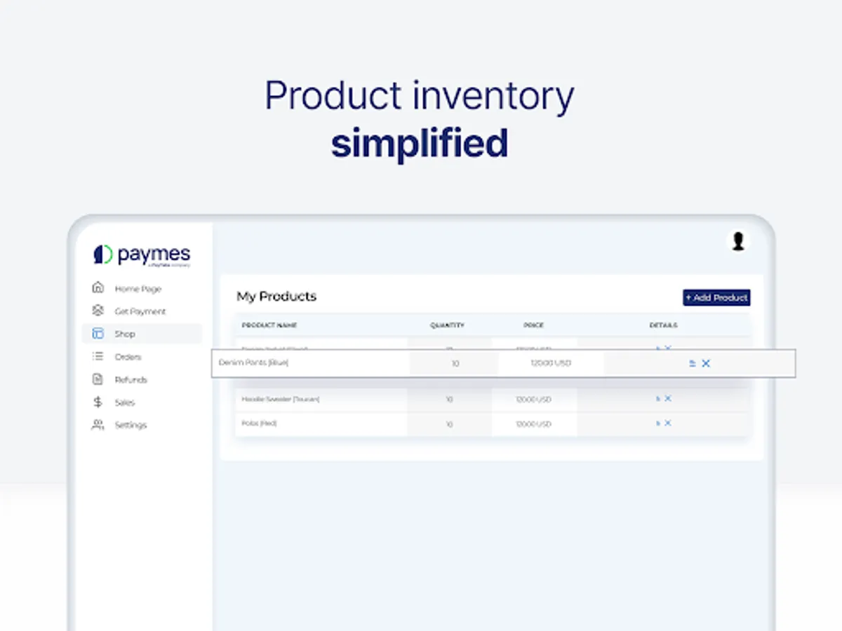 Activate your Paymes shop and display your unique products through the Paymes app without the need for additional technical expertise. Sell your products by displaying them on your customized digital store front, for free, with the assurance of Paymes.