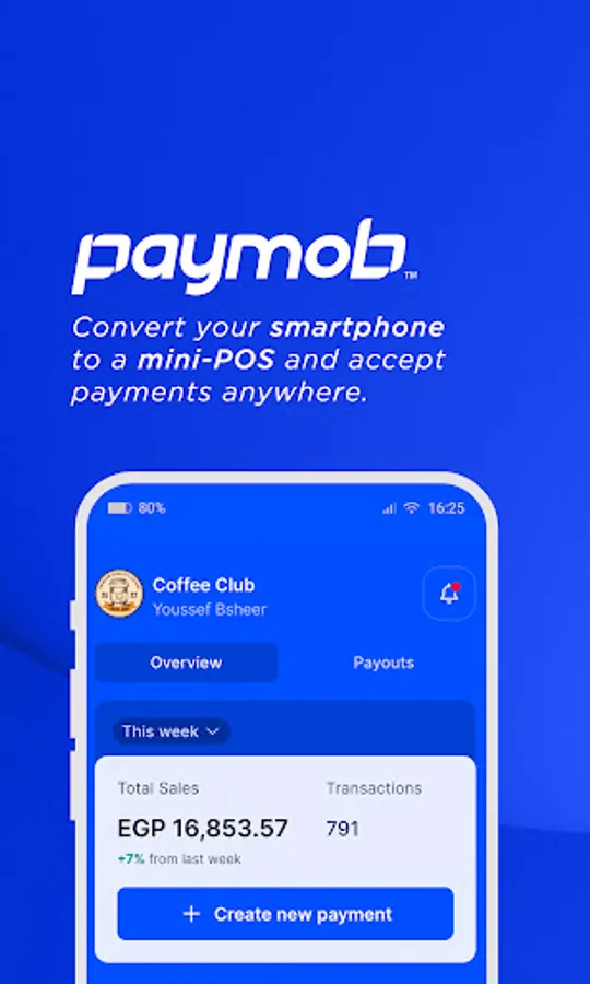 Paymob app is a fast and easy way to accept payments on your mobile phone anytime anywhere.