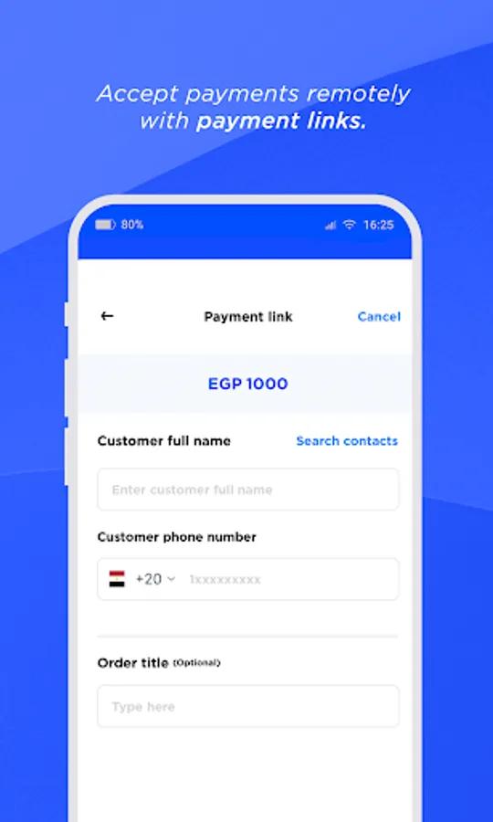 - Accept payments from your customer remotely through a payment link