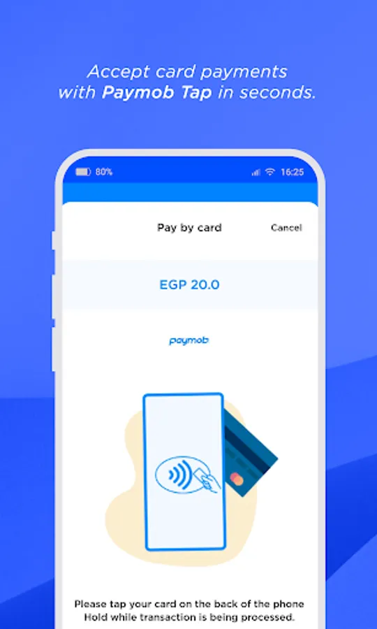 Tap on Phone accepts payments through contactless debit/credit cards [Mastercard – Visa – Meeza] on your NFC enabled mobile phone