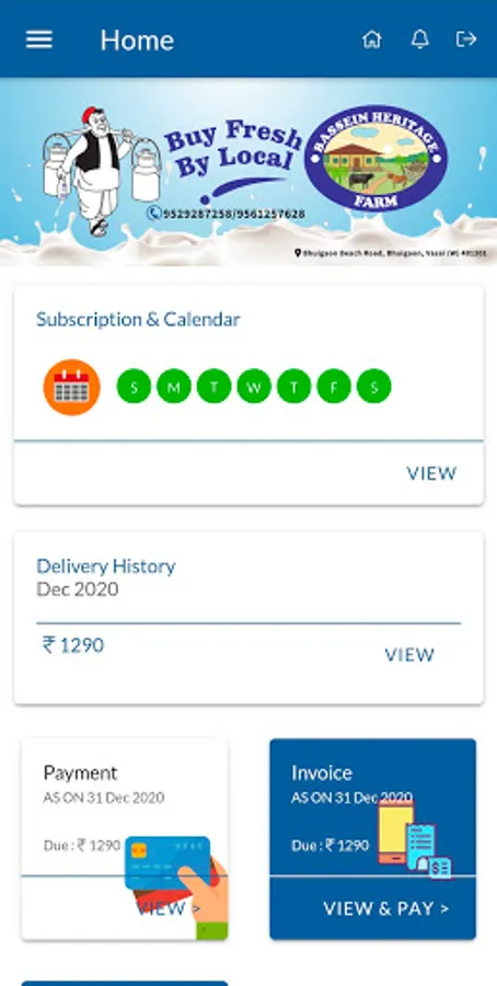 We introduce this application to the user to seamless subscribe to various milk plans, pay bill online, check buying history and full record of milk ordered.