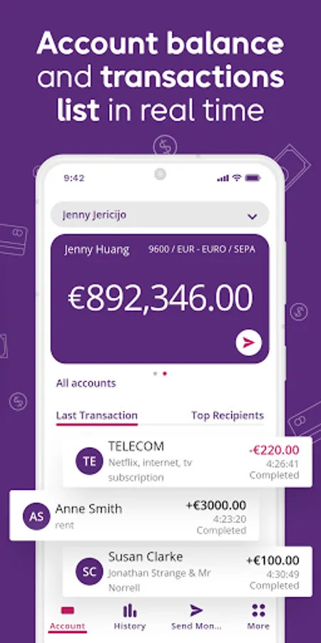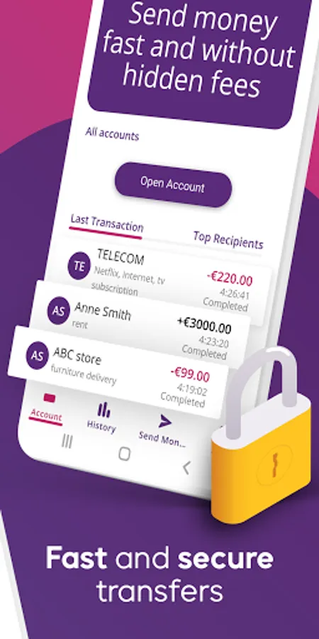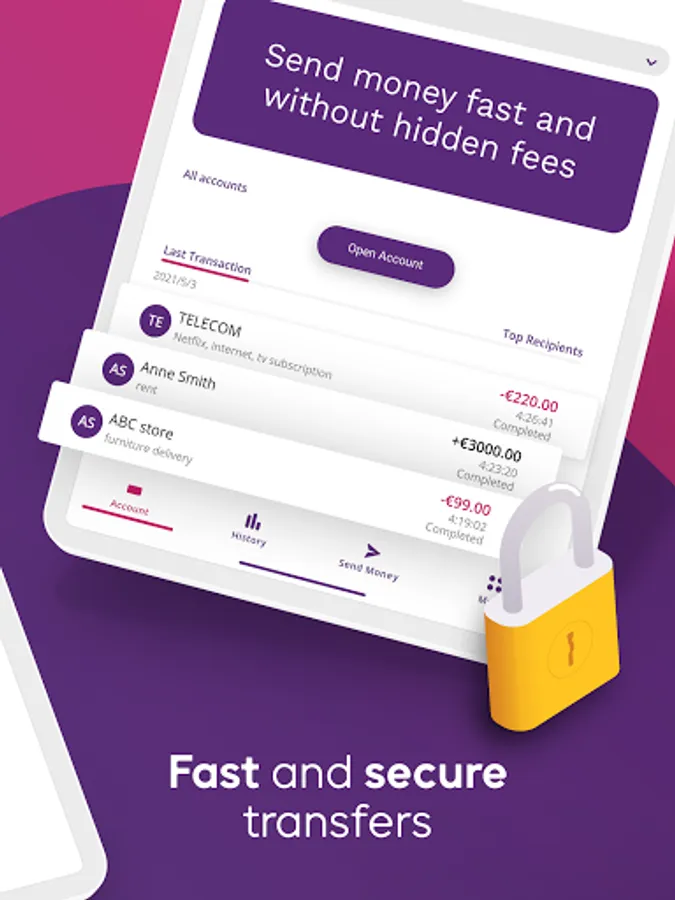 - Send a transfer (Euros only) to anyone in the EEA from your smartphone;