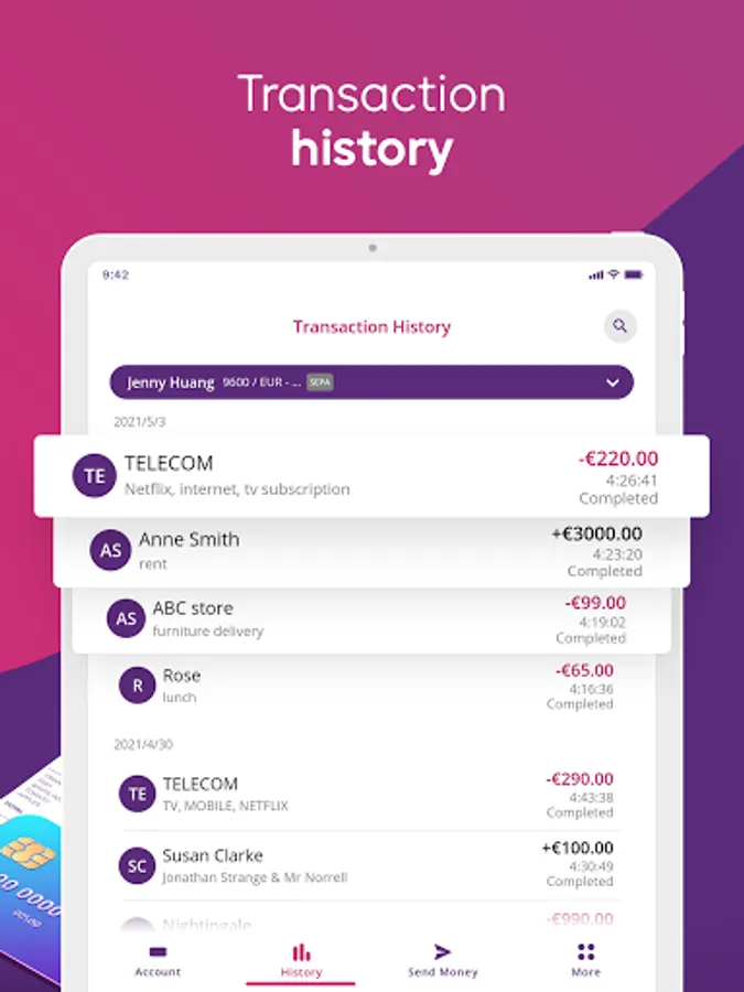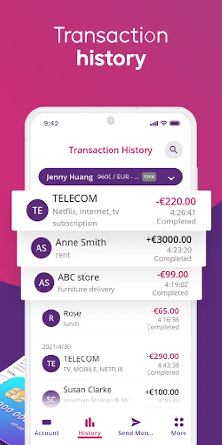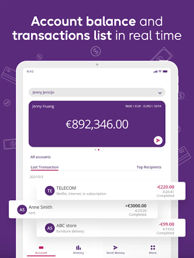 - Follow the movement of funds on your account in real time, with regular notifications;
