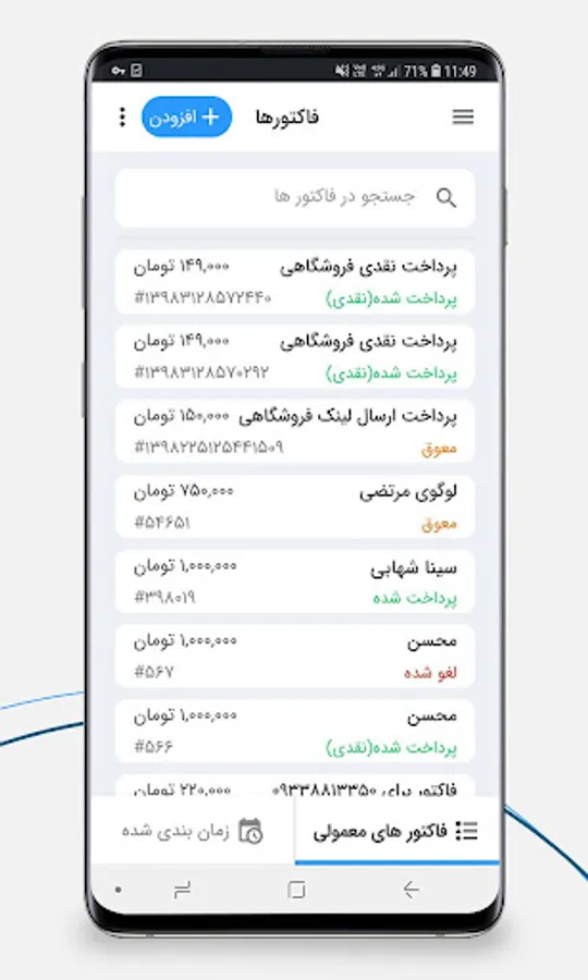 2. Infinite definition of real and legal customer with specifications such as address, contact number, email and reminder text manually or by adding from the contact list