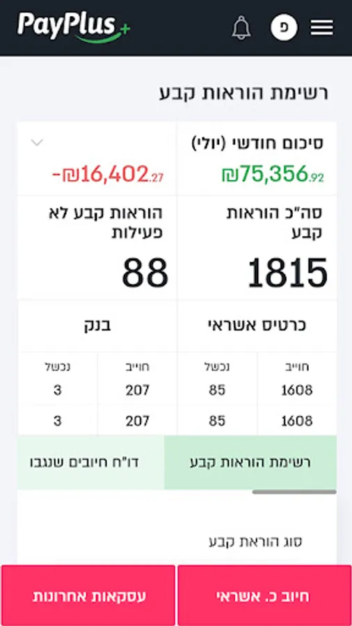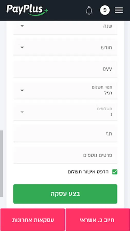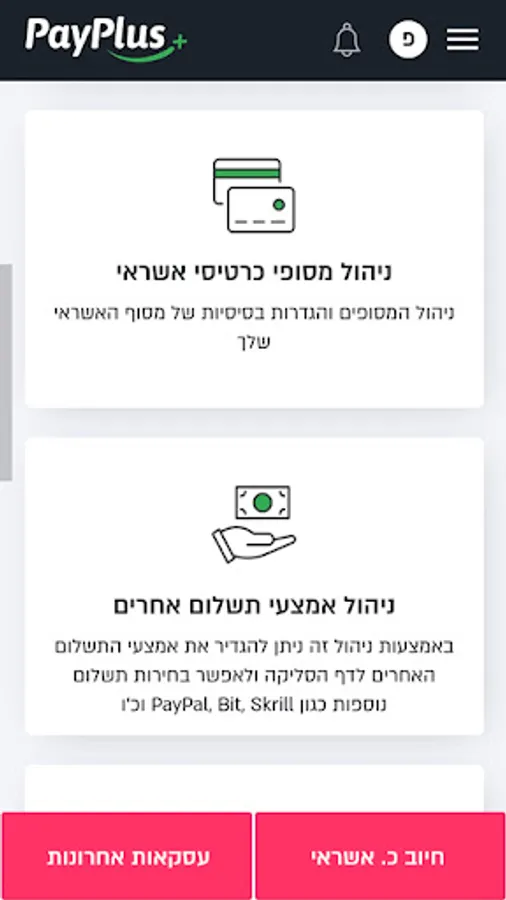 Whether you are a service provider, small, medium or large business, Pay Plus allows you to start and get credit cards in the business, connect your invoicing system, set up standing orders at the highest and most advanced level in Israel or simply clear transactions directly from your laptop / computer.