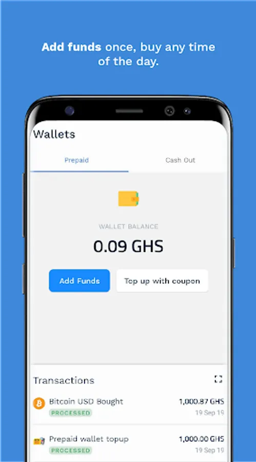 Buy bitcoin any day, any time, be it a holiday or after work hours. With money in your prepaid wallet, you can transact when you urgently need to get bitcoin and have it delivered immediately.