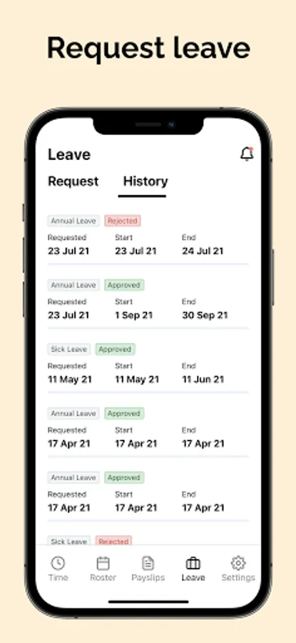 Request leave: You can send in a request for leave through the app which your employer can then accept or reject using their own Payroller account. You'll be able to request time off as part of your sick leave and annual leave.