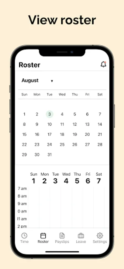 View your roster: See what days you're working and for how long. View your shifts from a monthly or weekly view. You can also see any annual leave you have planned from this calendar.