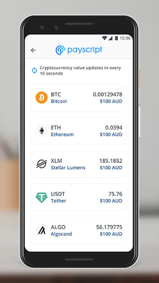 The coins supported by the app are BTC, ETH, USDT, AlGO.