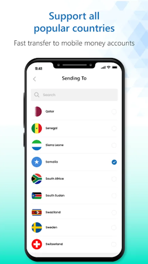 - Select send to country