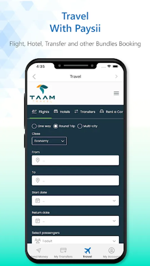 - Paysii has been linked to travel service that provides flight, hotel and other bundles booking for Paysii customers. The service is currently hosted at TaamTravel and is owned and managed by AfroAtlas (afroatlas.com). AfroAtlas will manage the complete booking follow (reservation and payments). AfroAtlas uses separate payment processor for customer bookings. Once the customer clicks on the Travel link/button on the app/web, he/she will be redirected to the TaamTravel booking site.