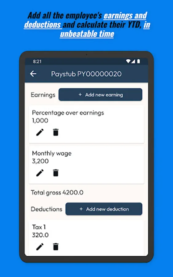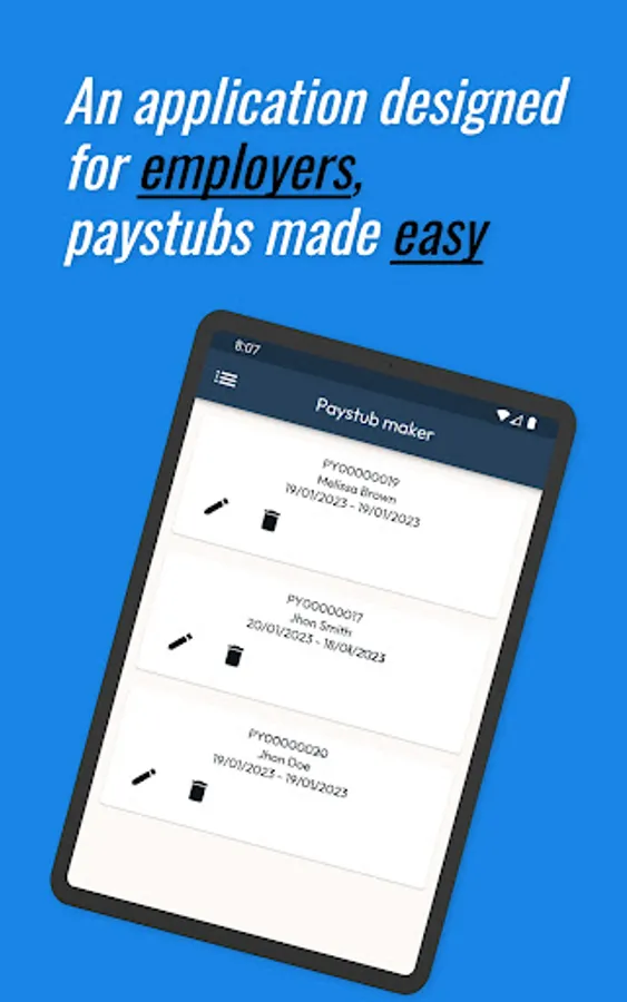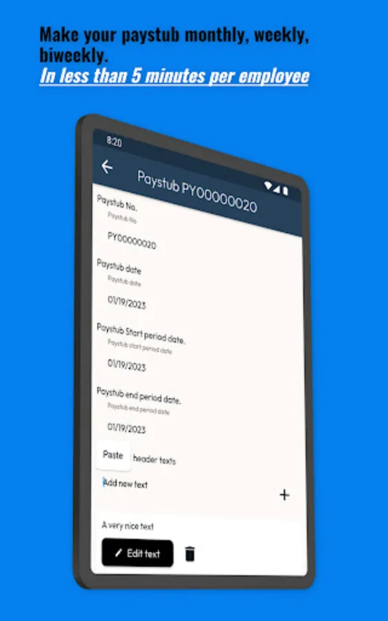 So, whether you're a small business owner or a busy payroll office, our Paystub Generator app is the ultimate solution for your payroll needs. With features like automation, customization, and security, our paystub maker app is the most efficient and effective way to create professional and accurate payslips. Try it today and see how it can simplify and streamline your payroll process!