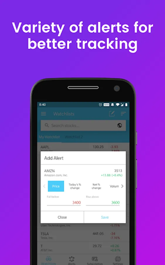 In short, this stock alert app is designed to help you catch every trade you wish to take throughout the day. You can use the app to track a wide range of stocks in real-time. Plus, you will be able to customize the notification types.