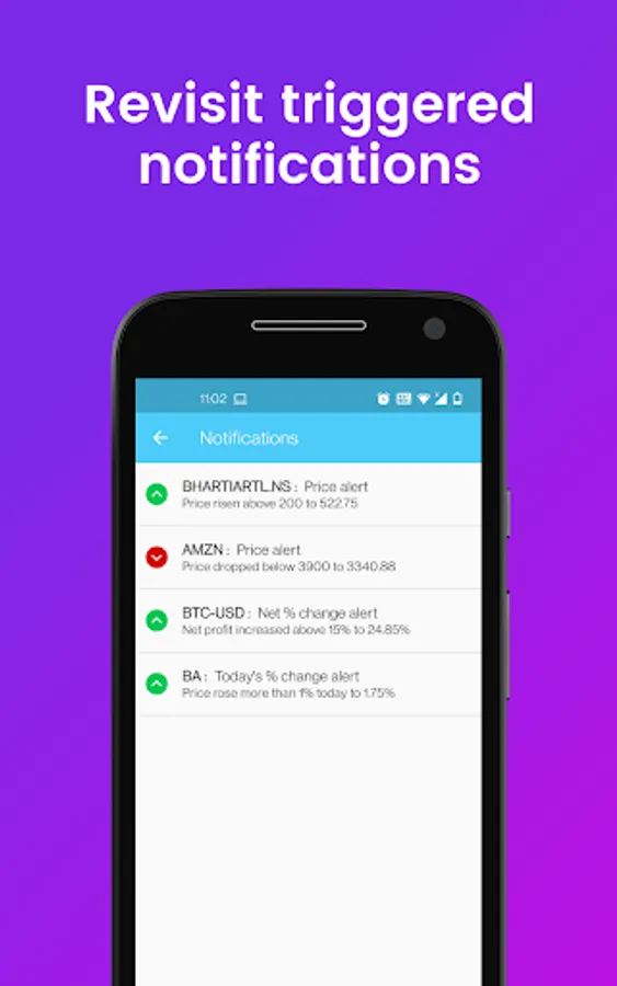 With this app you can easily add price alerts, daily % change, net % change alerts and more to easily track your profit and loss.