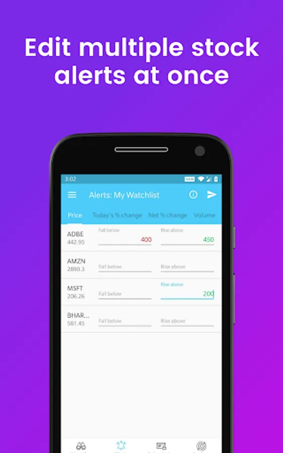 ★ Add Net % change alert to track net profit/loss % in a stock.