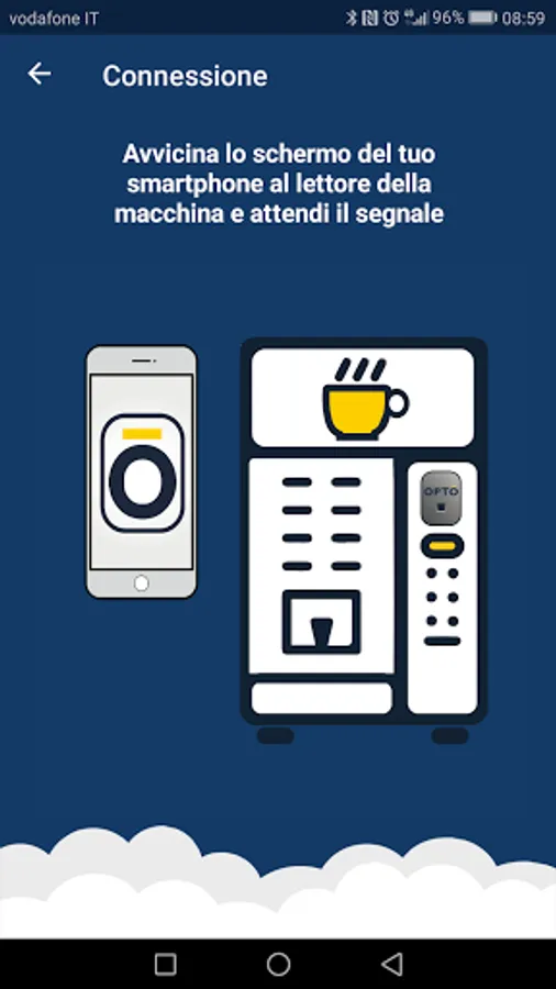 Open the app, find the Opto cending machine closest to you and revolutionize your way of having a coffee: your smartphone will connect to the vending machine via an innovative beam of light and you can select your favorite drink, an animation will show you when you can pick it up.