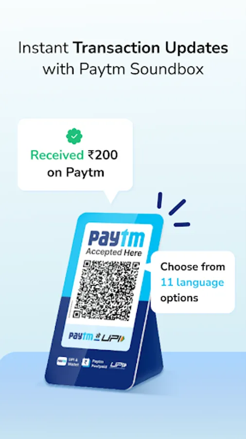 Accept payments using any UPI app, Debit/Credit Card, Net-banking & Paytm Wallet. merchants can also accept payments from mobile number, QR code or card machine