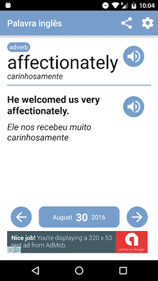 The application displays, for each day of the year, a word and an example word of the sentence, with a human-voiced sound as pronunce both the sentence and the word, helping to improve the student's pronunciation.