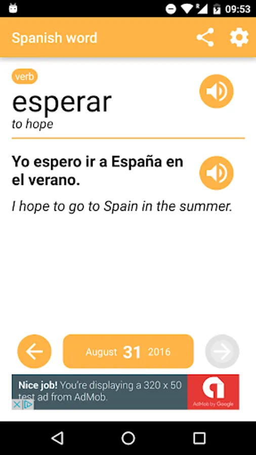 This app has been designed for all the people interested in learning Spanish or wanting to improve their Spanish vocabulary.