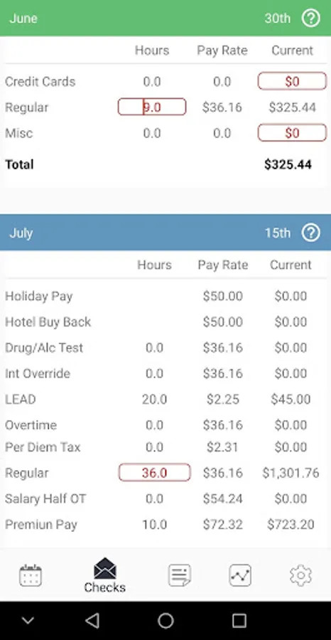 By clicking on the Checks icon, you will see a breakdown of BOTH upcoming checks. It has been designed to resemble the company provided Pay Stub, so that you may compare it accordingly when it is Pay Day!