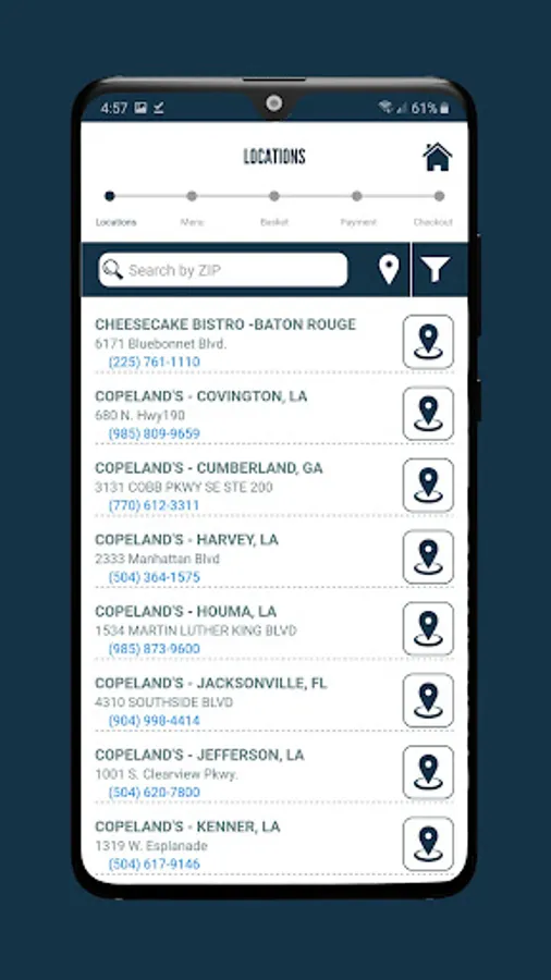 • Find a Copeland's or Cheesecake Bistro that’s closest to your location.