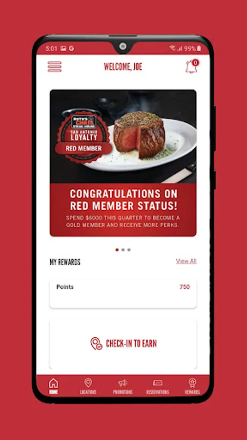 Introducing the Ruth's Chris San Antonio Loyalty Rewards mobile app. Sign up to become a Loyalty Member and start earning points towards exclusive rewards and luxurious perks. Joining the loyalty program is free and easy to set up right from your smartphone.