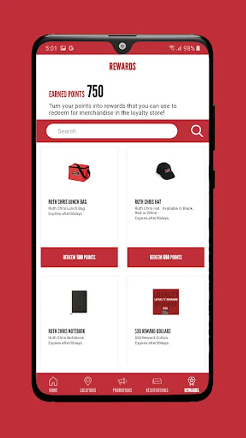Redeem for Rewards: Turn your points into dining rewards and stylish Ruth’s Chris merchandise.