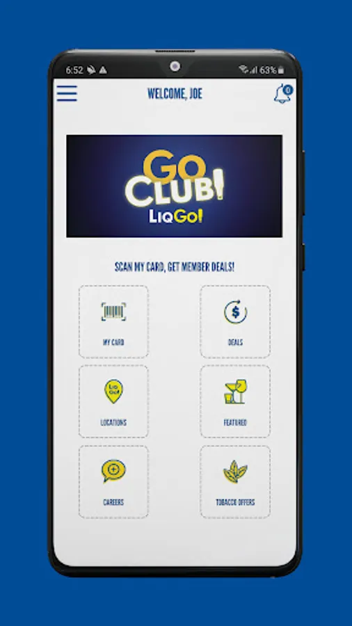 Welcome to Go Club LiqGo! Explore Club Deals, Featured Items & Tobacco Offers. Find a LiqGo! location near you and simply scan your app or enter your phone number at checkout in store to get Club Deals! Discover this and more right from the app or at www.liqgo.com/GoClub.