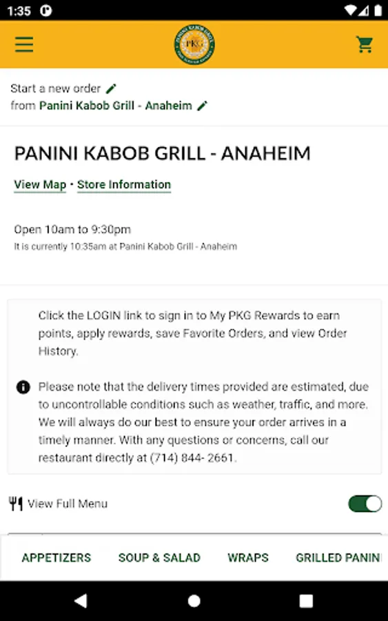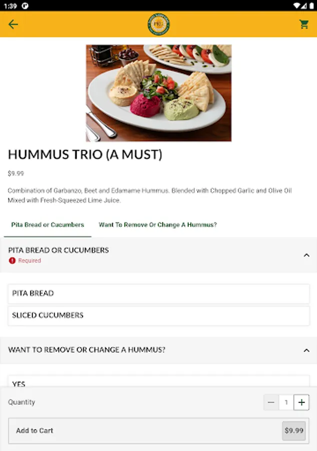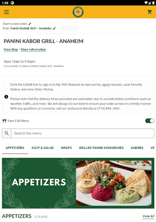 - Easy Menu Navigation: Browse our diverse menu with ease and discover a wide range of delicious options from our signature kabobs, crispy paninis, refreshing salads, and more!