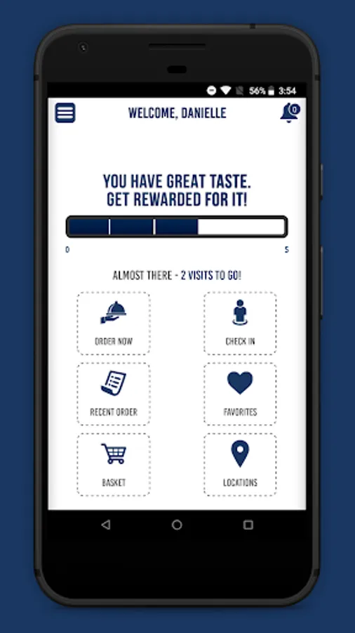 - Earn points towards rewards on each visit and online order