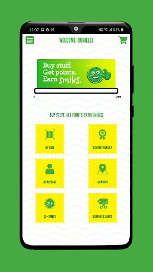 The Yesway Rewards program rewards our most loyal customers. Use your Rewards card in stores and at the pump to earn points. For every 250 points you earn, you’ll receive a Smile. Smiles can be redeemed for FREE stuff like freshly-brewed coffee, fountain drinks, Yesway swag and more!