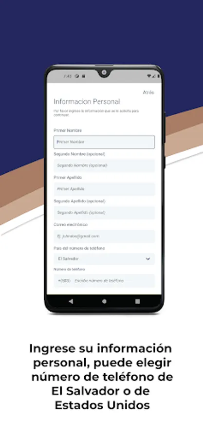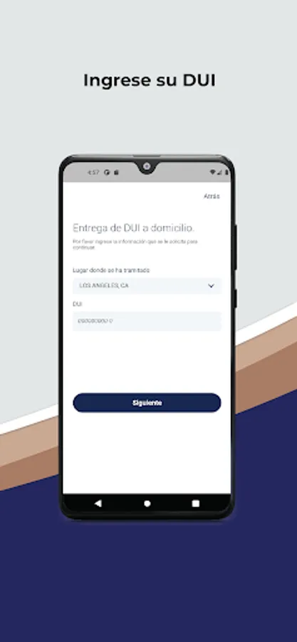 The application (app) allows the entry of information on the Salvadoran Unique Identification Document (DUI) application process and the payment for sending it to your residence by requesting the following data: