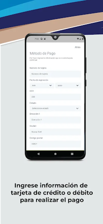 The applicant, in the app, enters various elements of information that include the data of the procedure carried out, their personal and demographic information and enters the information of a Credit or Debit Card to make the payment for the collection, shipping and tracking services for their document and finally the processing of your payment is managed through a financial portal.