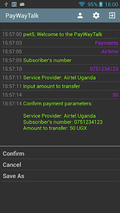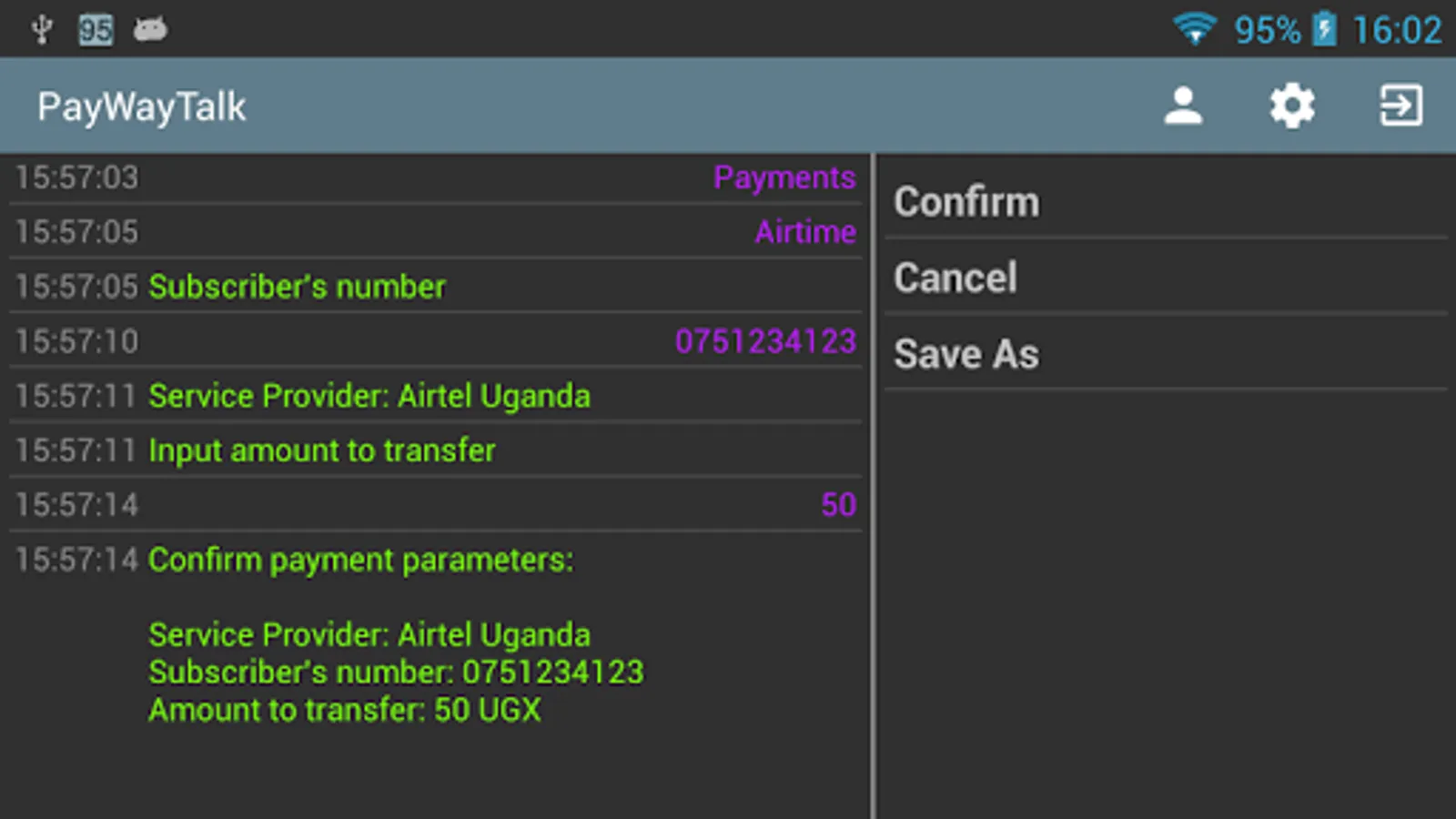 An application for retailers of the PayWay network in Uganda. It is used to resell different services like airtime, utility bills payments, Internet activations, TV subscriptions, tickets, insurance, etc. A prospective retailer signs a contract with PayWay, gets login credentials for the PayWay Talk and starts earning money on every sale made to the customers.