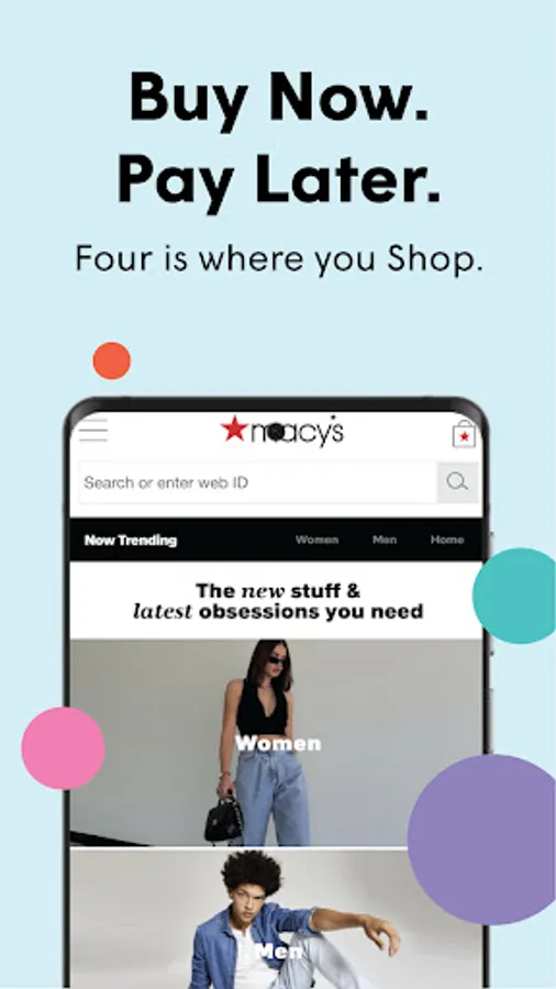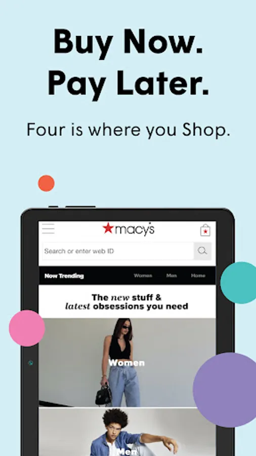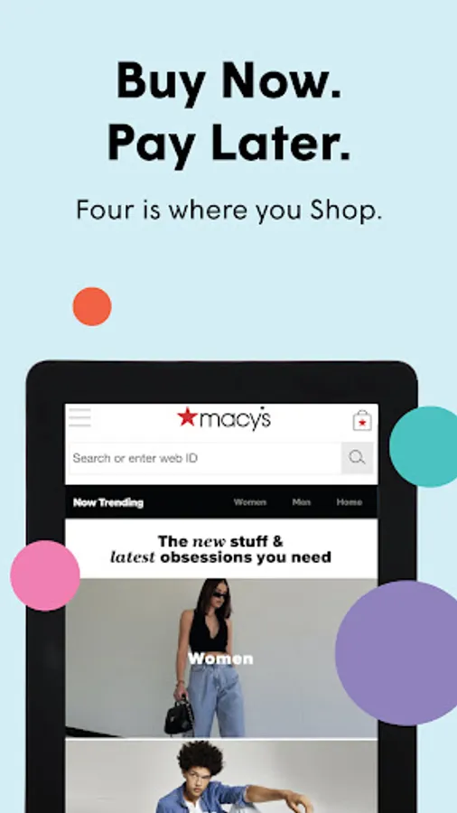 Four allows you to buy what you want today and make four equal payments every 2 weeks.