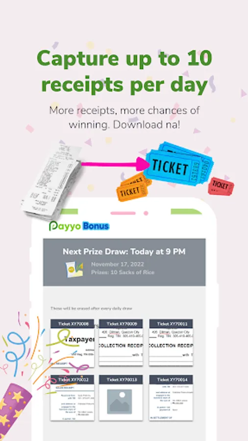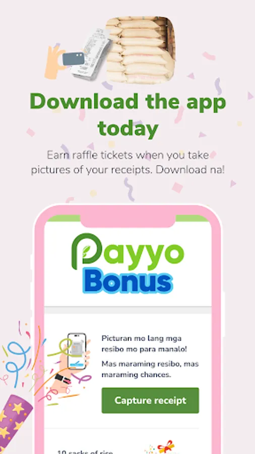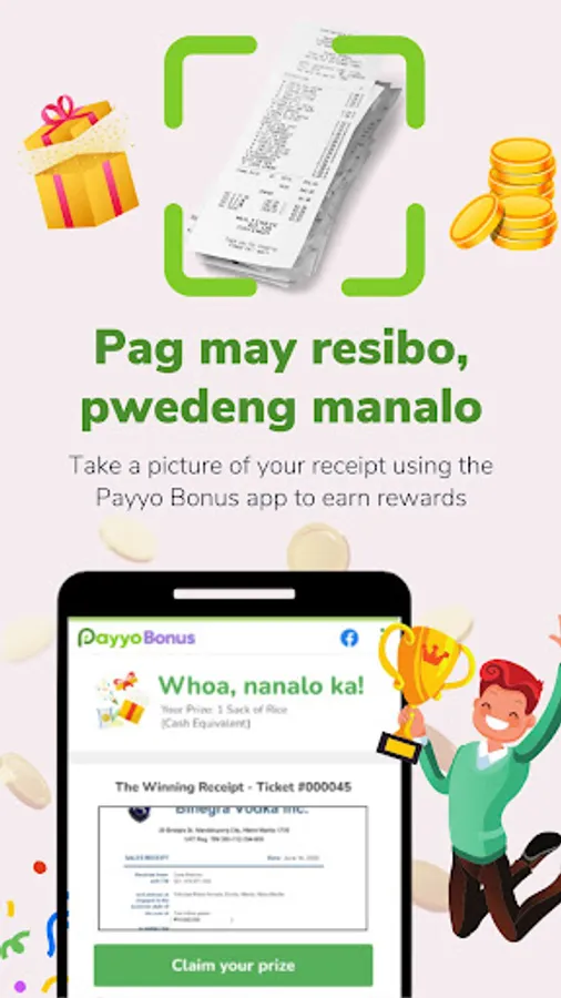 Pag may resibo, pwede manalo! Scan nyo lang resibo nyo sa Payyo app para magkaroon ng chance manalo sa mga promo