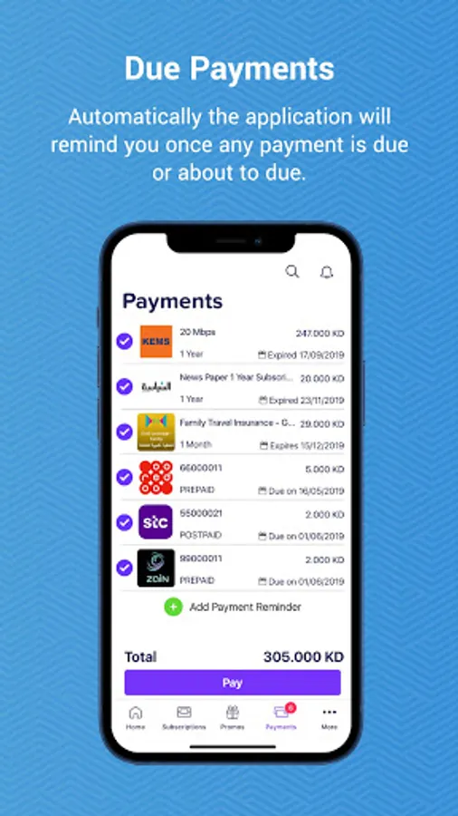 You can subscribe to any service through Payzah and the app will keep a track of the dates and payments.