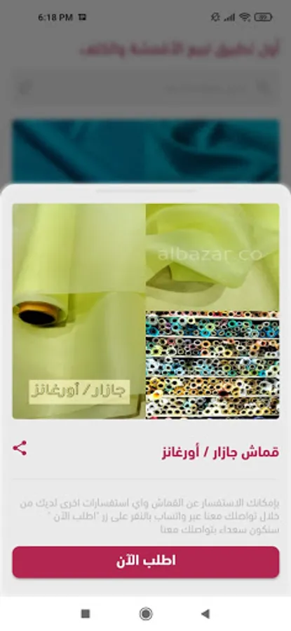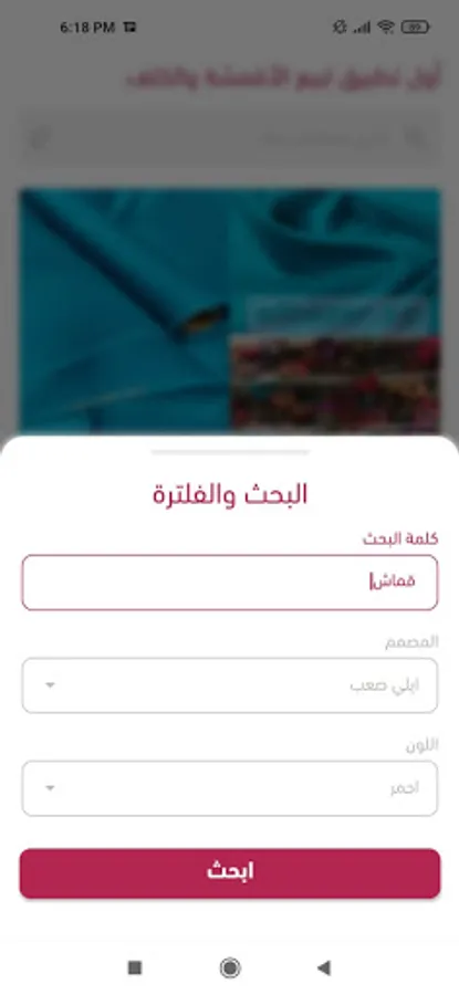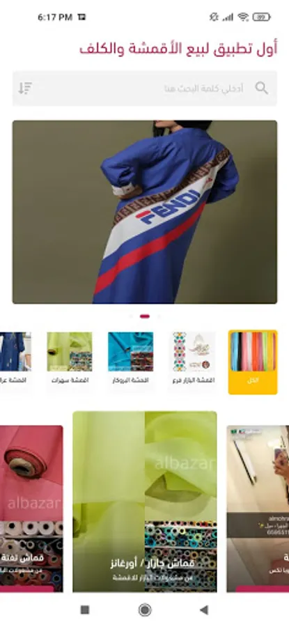 The first electronic application specialized in all types of gentle fabrics of all colors and a variety of fabrics for abayas, evening fabrics, and everything related to fashion in the world of fabrics, such as new embroidery designs and printed fabrics