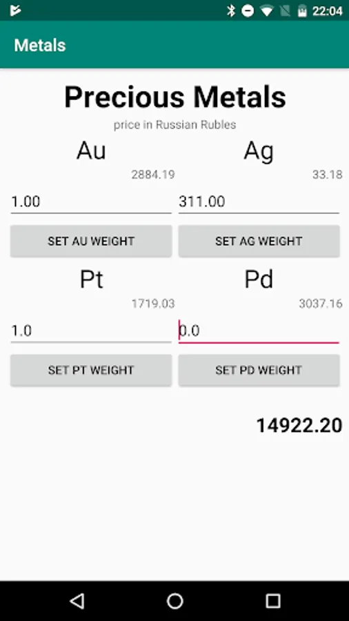 Application can store weight of four precious metals - Au, Ag, Pt and Pd.