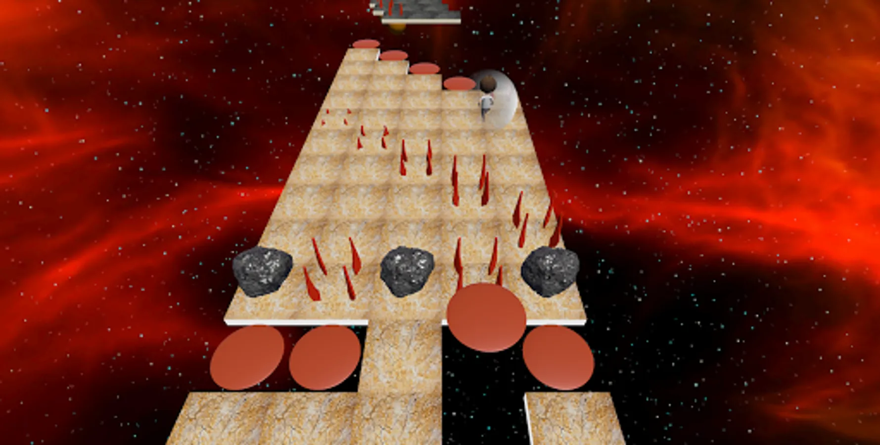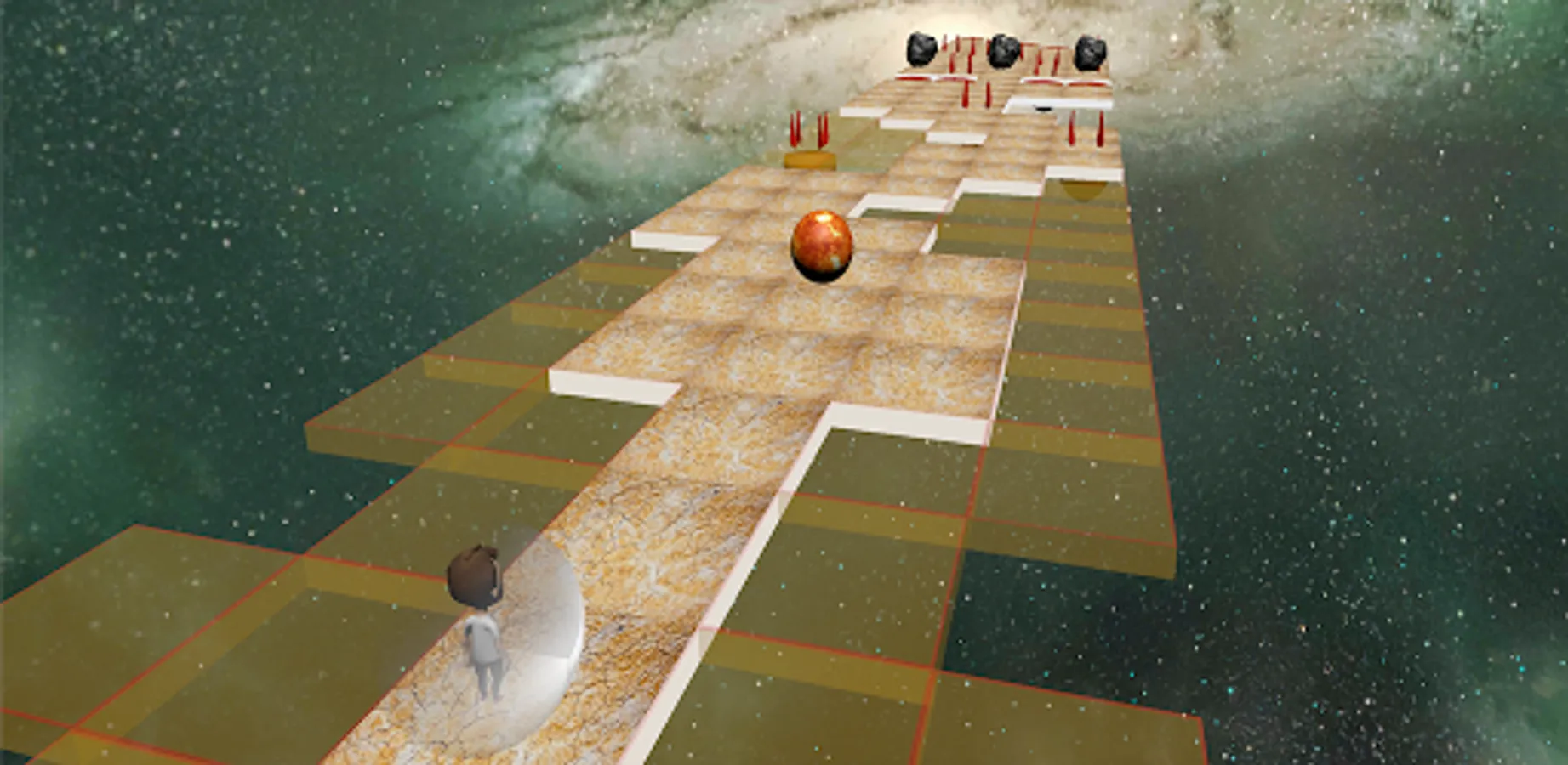 What you need is to avoid all obstacles, collect Planets and try not to fall off the path. Black hole is what you will face at the end and this is the destination point to finish this level.
