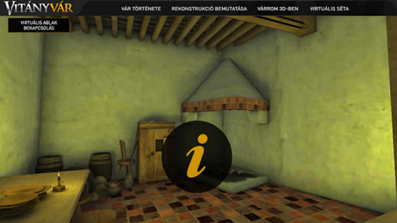 The application allows you to fully walkable theoretical reconstruction of the Vitányvár. Used the fortress was térszkenneres files, and can be found in the technical documentation of the reconstruction. The virtual crawl by clicking the contact points can read additional information, or to listen to the narration in Hungarian language can help.