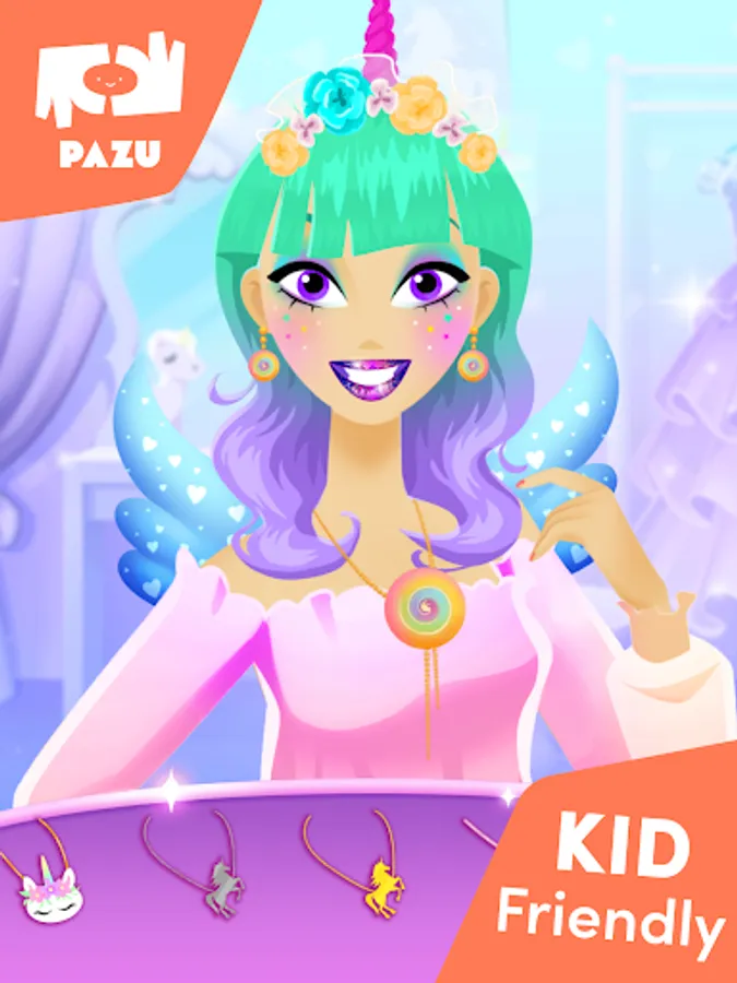 Makeup Girls - Unicorn is a great game for kids with a passion for fashion, beauty, and style. It’s perfect for a colorful unicorn dress-up - a variety of hairstyles and hair colors, colorful lipsticks, eyeshadows, blushes, and other makeup accessories, clothing items, and hair accessories.