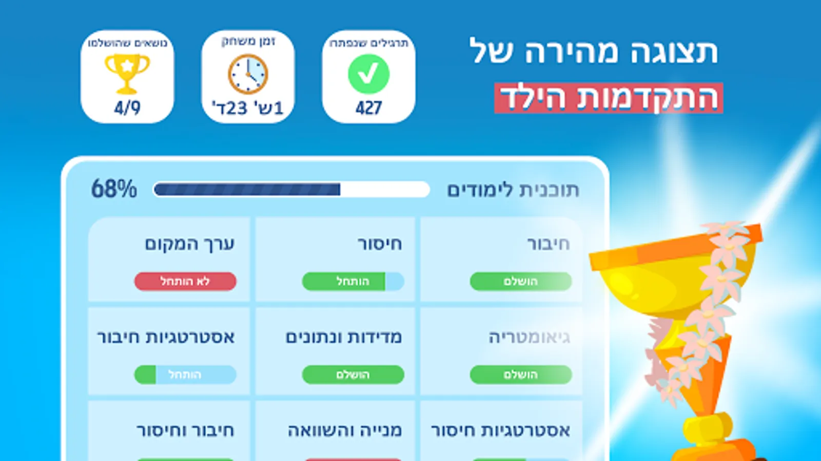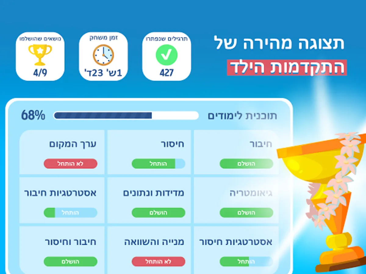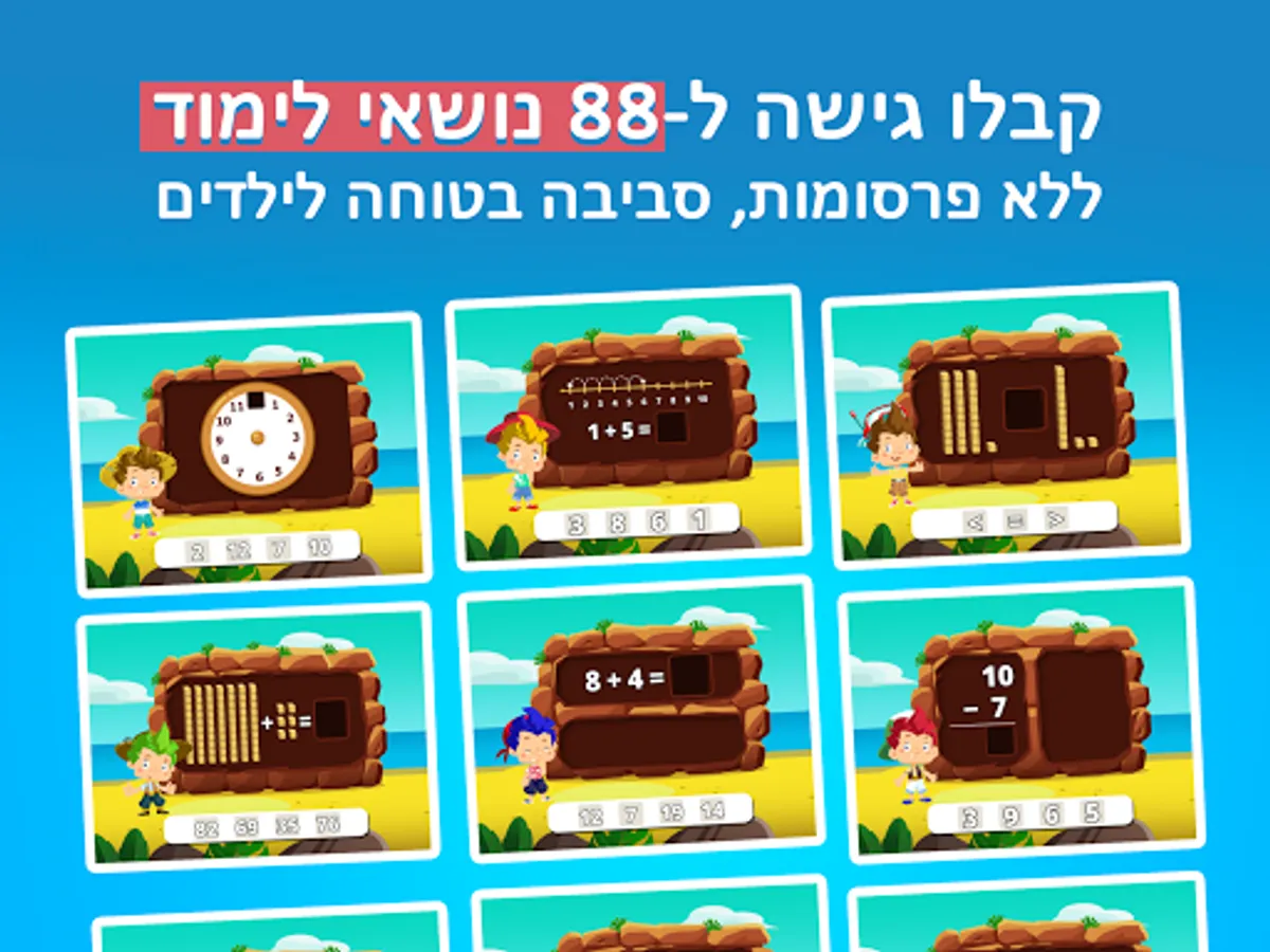 "Play and Learn" is a series of educational games for children (kindergarten to fourth grade) that allow them to learn, practice and develop their arithmetic and reading skills in a fun and engaging way.