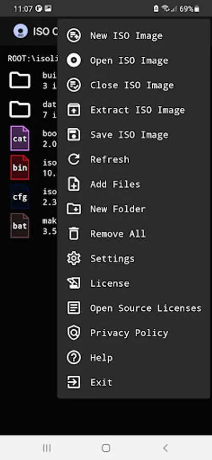 Create ISO image files on the go. Add your files to ISO images, external SD Cards are also supported. Compatible with almost all CD and DVD players as well as with other Android apps that can read ISO images.